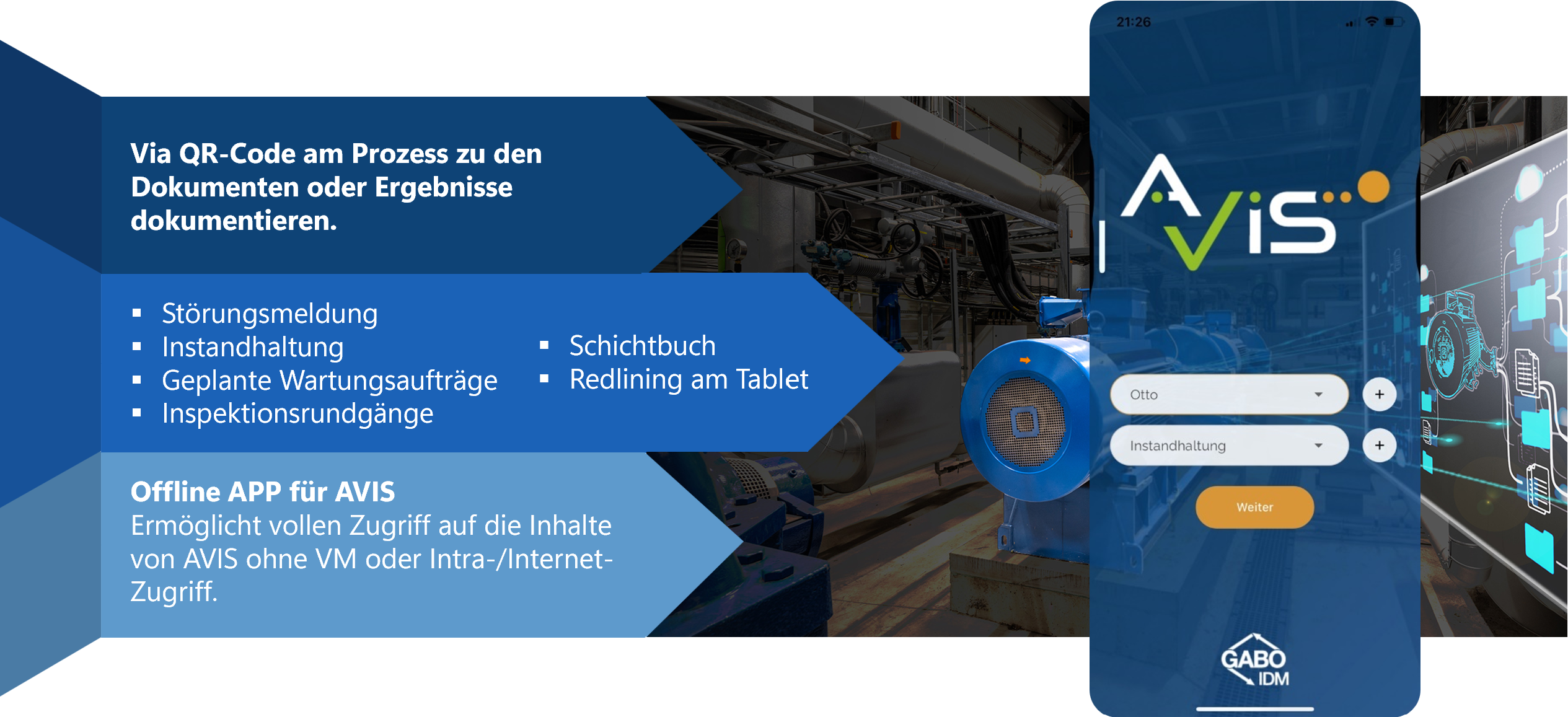 Die AVIS® APP ist die mobile Schnittstelle zum Digitalen Informationszwilling und ermöglicht Mitarbeitern, die im Betrieb oder im Außendienst unterwegs sind, per Smartphone oder Tablet effizient, sicher und datenbasiert zu arbeiten. Sie gewährleistet, dass alle technischen Informationen direkt am Prozess zur Verfügung stehen und Arbeitsprozesse sofort digital dokumentiert werden.